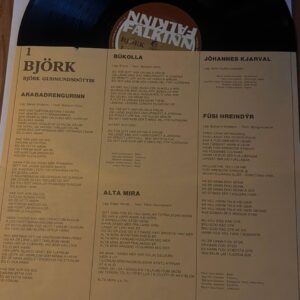 The album consists of cover songs translated into Icelandic, except “Jóhannes Kjarval” written and performed by Björk herself.